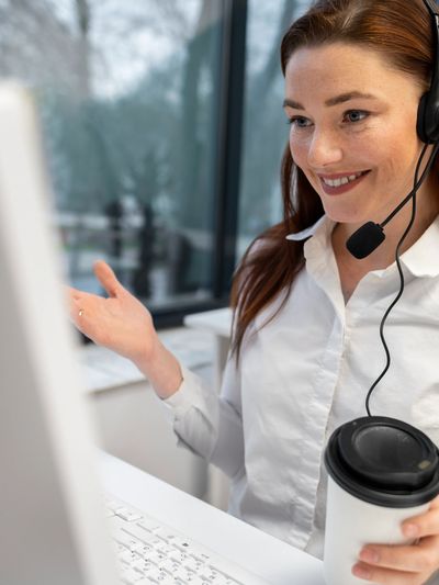 Beautiful light and modern state of the art call centre with large desks and monitors